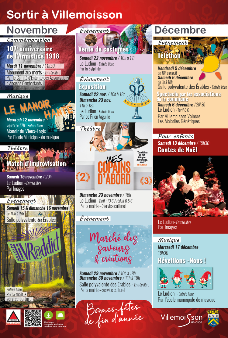 Sortir à Villemoisson en novembre et décembre 2025