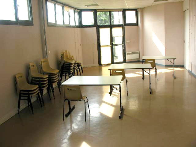 À disposition : 6 tables rectangulaires et 30 chaises.